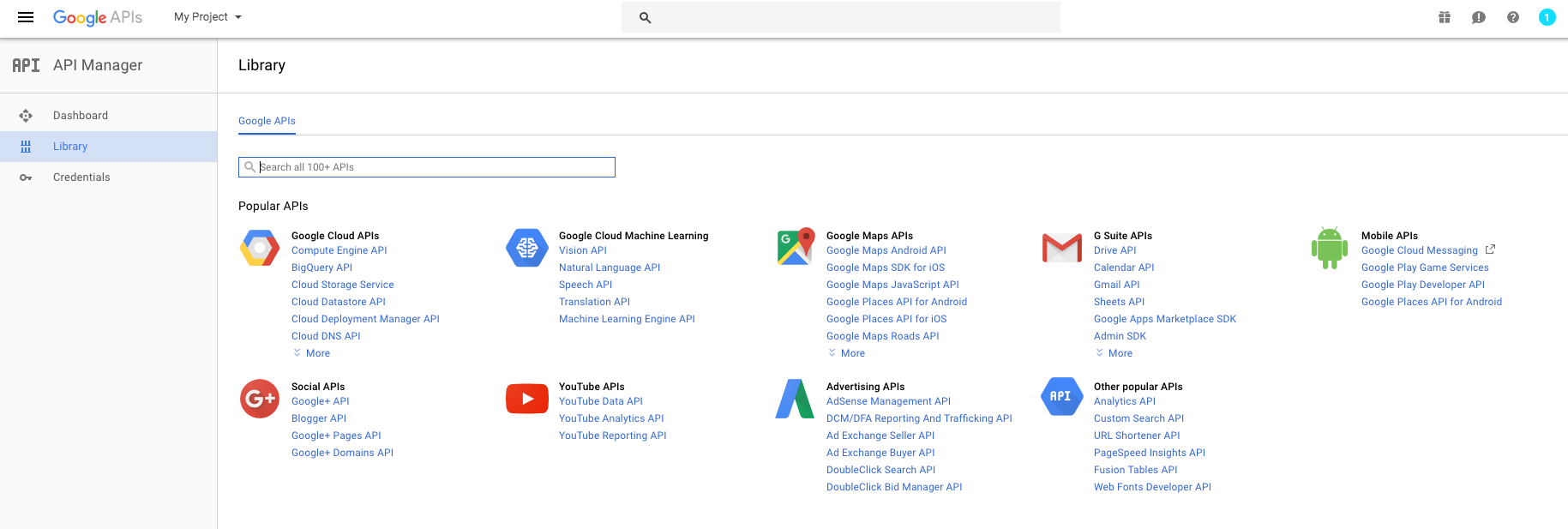 Most API’s won’t simply let you pull in their data. The YouTube API is no different. To retrieve data you will need to register an API key which you need to pass in with every request. That way YouTube knows that you’re calling their API as a validated user. To get such an API key you can go to your Developer Console and register it. First, we need to Create a new project in the API console which we can do where it says My project in the top-left corner. When that is said and done we can search for the YouTube Data API, which is the one we’re going to be needing for this project.