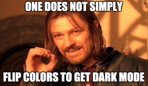 One could be tempted to think that implementing dark mode is as simple as essentially flipping our color scheme. However, there’s more to it than that. We might be using certain colors that vibe really well with a light background. By just flipping colors these could become hard to read on a darker background.
